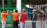 Tim Kesehatan dari Sidoarjo menyemprotkan disinfektan dan insektisida di area Pondok Pesantren (Ponpes) Al Khoziny di Kecamatan Buduran, Sidoarjo, Jawa Timur, Kamis (9/10/2025). Polda Jawa Timur akan menyelidiki penyebab ambruknya mushala pada saat santri menunaikan shalat Asar, Senin (29/9) di Pondok Pesantren Al Khoziny. (FOTO : ANTARA FOTO/Umarul Faruq)
