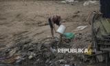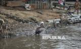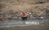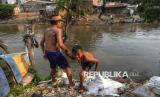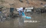 Warga membuang sampah di aliran air Sungai Ciliwung di kawasan Manggarai, Jakarta, Kamis (9/10/2025). Kegiatan sore di bantaran Sungai Ciliwung di kawasan tersebut tampak beragam, mulai dari anak-anak yang bermain dan berenang, hingga warga yang memanfaatkan aliran sungai untuk mencuci pakaian dan membersihkan diri. Namun, di sisi lain, masih terdapat warga yang tetap membuang sampah ke sungai. (FOTO : Republika/Prayogi)