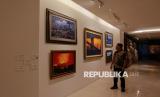 Pengunjung mengamati lukisan karya Presiden ke-6 Susilo Bambang Yudhoyono (SBY) dalam pameran Indonesian Contemporary Art & Design (ICAD) 15, di Hotel Grandkemang Jakarta, Mampang Prapatan, Jakarta Selatan, Jumat (10/10/2025). Presiden ke-6 Republik Indonesia Susilo Bambang Yudhoyono memajang karya lukis berjudul The Gaza, The Extreme Human Suffering (2025), Stop Forest Fire (2025), The Beauty of Beach Rocks (2023), Sunset Over the Brooklyn Bridge (2024) dan Small Forest in Cisarua (2025). (FOTO : Republika/Thoudy Badai)