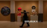 Pengunjung mengamati instalasi seni dan desain dalam pameran Indonesian Contemporary Art & Design (ICAD) 15, di Hotel Grandkemang Jakarta, Mampang Prapatan, Jakarta Selatan, Jumat (10/10/2025). (FOTO : Republika/Thoudy Badai)