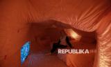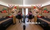 Pengunjung karya instalasi interior kamar hotel dari seniman Rein Maychaelson berjudul Symbiosis dalam pameran Indonesian Contemporary Art & Design (ICAD) 15, di Hotel Grandkemang Jakarta, Mampang Prapatan, Jakarta Selatan, Jumat (10/10/2025). Pameran ICAD 2025 kali ini mengusung tema Earth Society yang mengajak para pecinta seni untuk menelisik hubungan antara manusia dan alam. (FOTO : Republika/Thoudy Badai)