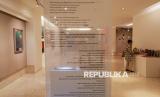 Pengunjung mengamati instalasi seni dan desain dalam pameran Indonesian Contemporary Art & Design (ICAD) 15, di Hotel Grandkemang Jakarta, Mampang Prapatan, Jakarta Selatan, Jumat (10/10/2025). Sebanyak 50 pameris dari lintas disiplin turut ambil bagian seperti karya dari fotografer perempuan asal Aceh Riska Munawarah yang menampilkan potret petani kopi perempuan berjudul Ine Kewe dan karya instalasi kamar hotel dari seniman Rein Maychaelson berjudul Symbiosis. (FOTO : Republika/Thoudy Badai)