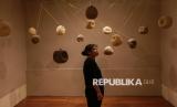 Pengunjung mengamati instalasi seni dan desain dalam pameran Indonesian Contemporary Art & Design (ICAD) 15, di Hotel Grandkemang Jakarta, Mampang Prapatan, Jakarta Selatan, Jumat (10/10/2025). Pameran ICAD 2025 kali ini mengusung tema Earth Society. (FOTO : Republika/Thoudy Badai)