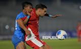 Pesepak bola Timnas Indonesia U-23 Jens Raven berebut bola dengan pesepak bola Timnas India pada laga persahabatan di Stadion Madya, Kompleks GBK, Jakarta, Jumat (10/10/2025). Indonesia dikalahkan India dengan skor 1-2. (FOTO : Edwin Putranto/Republika)