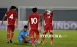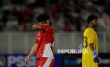 Ekspresi pesepak bola Timnas Indonesia U-23 Hokky Caraka pada laga persahabatan melawan India di Stadion Madya, Kompleks GBK, Jakarta, Jumat (10/10/2025). Indonesia dikalahkan India dengan skor 1-2. (FOTO : Edwin Putranto/Republika)