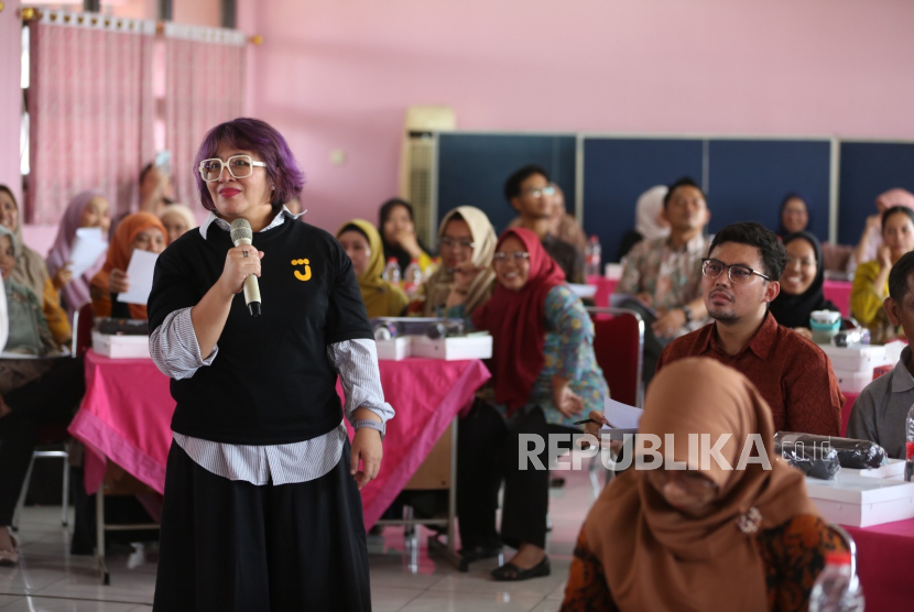 Corporate Brand Management Lead Bank Jago Deviana saat acara edukasi keuangan bertema Guru Jago Financial untuk guru SDN 07, SDN 08, dan SMPN 117 Duren Sawit, di Jakarta, Kamis (9/10/2025). Dalam rangka meningkatkan kesehatan finansial masyarakat, PT Bank Jago Tbk memberikan edukasi keuangan kepada para guru dan memperluas literasi finansial di kalangan pendidik bangsa yang sejalan dengan aspirasi Bank Jago dalam meningkatkan kesempatan tumbuh berjuta orang dan diharapkan dapat menumbuhkan budaya finansial sehat yang dimulai dari ruang kelas, sejalan dengan aspirasi Bank Jago dalam meningkatkan kesempatan tumbuh berjuta orang. (FOTO : Dok Republika)