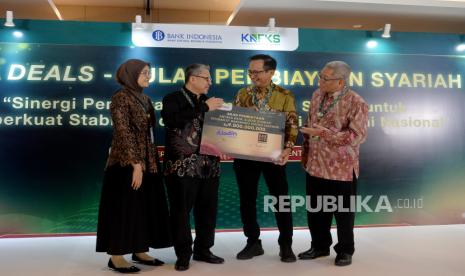 REPUBLIKA.CO.ID, JAKARTA -- Bank Aladin Syariah melaksanakan prosesi akad pembiayaan korporasi saat acara Business and Financing Deals di arena Indonesia Sharia Economic Festival (ISEF) 2025, Jakarta, Jumat (10/10/2025).