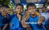 REPUBLIKA.CO.ID, INDRAMAYU -- Siswa Sekolah Dasar menunjukkan makanan olahan dari ikan saat kampanye Gerakan Memasyarakatkan Makan Ikan (Gemarikan) di Taman Cimanuk, Indramayu, Jawa Barat, Sabtu (11/10/2025).