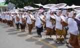 REPUBLIKA.CO.ID, KENDARI -- Menteri Agama Nasaruddin Umar menyambut peserta pawai taaruf kontingen Provinsi Papua Barat di Kendari, Sulawesi Tenggara, Sabtu (11/10/2025).