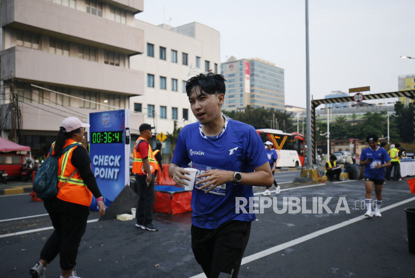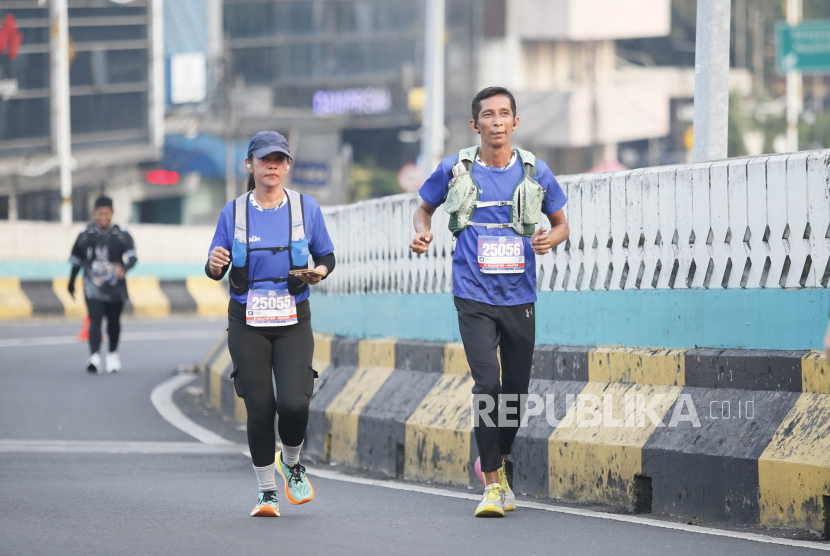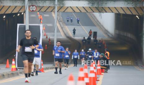 Pelari mengikuti ajang Crystalin RunXperience 2025 di Lippo Mall Nusantara, Semanggi, Jakarta, Ahad (12/10/2025). Sebanyak 8.000 pelari mengikuti ajang Crystalin RunXperience 2025 yang melombakan kategori Half Marathon 21K, 2.5K Fun Run, 5K, dan 10K. (FOTO : Dok Republika)