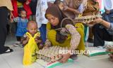 Seorang ibu menerima bantuan paket bantuan zakat infak dan sedekah dari Badan Amil Zakat Nasional (Baznas) Kota Palu di Palu, Sulawesi Tengah, Selasa (14/10/2025). Baznas Kota Palu menyalurkan paket bantuan senilai Rp186 juta kepada 319 warga yang berhak terdiri dari uang tunai dan sembako yang sebagian besarnya merupakan hasil pengumpulan zakat, infak, dan sedekah dari kalangan Aparatur Sipil Negara (ASN). (FOTO : ANTARA FOTO/Basri Marzuki)
