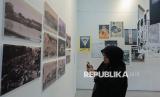 Pengunjung mengamati karya arsip dalam pameran PustaKarsa 2025 di Taman Ismail Marzuki (TIM), Jakarta, Selasa (14/10/2025). Pameran PustaKarsa bertajuk Lo Jual Gue Beli ini menyajikan beragam dokumentasi arsip kota Jakarta, karya sastra dan budaya yang menunjukan dinamika sosial ekonomi dari masa ke masa. Pameran yang digelar oleh Dinas Perpustakaan dan Kearsipan (Dispusip) DKI Jakarta tersebut berlangsung hingga 22 Oktober 2025 yang diharapkan menjadi ruang interaksi sosial sekaligus sarana edukasi mengenai sejarah kota Jakarta. (FOTO : Republika/Thoudy Badai)