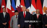 Presiden Prabowo Subianto bersama kepala negara lainnya berfoto saat menghadiri KTT perdamaian Timur Tengah di Sharm el-Sheikh, Mesir, Senin (13/10/2025). Presiden RI Prabowo Subianto turut menjadi saksi penandatanganan dokumen gencatan senjata Gaza dalam KTT perdamaian Timur Tengah. Penandatanganan itu dilakukan oleh Presiden AS Donald Trump bersama sejumlah mediator seperti Qatar, Mesir, dan Turki. (FOTO : AP Photo/Evan Vucci)