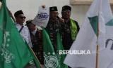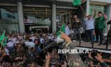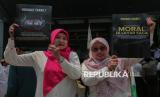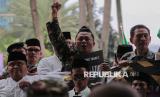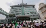 REPUBLIKA.CO.ID, JAKARTA -- Massa dari Pengurus Wilayah Nahdlatul Ulama (PWNU) DKI Jakarta dan sejumlah alumni pondok pesantren saat Aksi Bela Ulama dan Pesantren di depan gedung Transmedia, Jakarta, Rabu (15/10/2025).