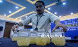 REPUBLIKA.CO.ID, TANGERANG -- Petugas berjaga di samping tersangka yang dihadirkan saat ungkap kasus penyelundupan benih bening lobster (BBL) di Kantor Bea Cukai Bandara Soekarno-Hatta, Kota Tangerang, Banten, Kamis (16/10/2025).