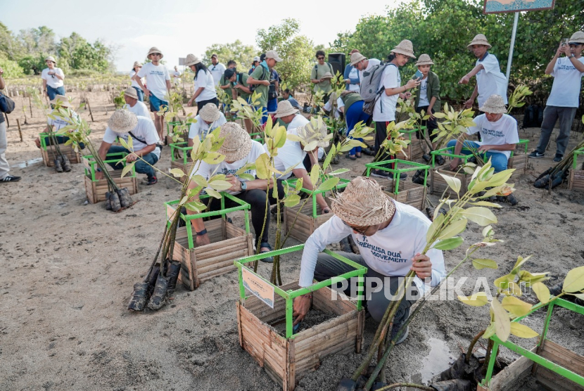 REPUBLIKA.CO.ID, NUSA DUA - Dalam rangkaian Road to The Nusa Dua Festival 2025, InJourney Tourism Development Corporation (ITDC) melalui The Nusa Dua bersama UPTD Taman Hutan Raya (Tahura) Ngurah Rai menanam 320 pohon mangrove, Jumat (17/10/2025). Mangrove jenis Rhizophora mucronata ditanam di area Pudut, Tanjung Benoa, Kuta Selatan, Kabupaten Badung hari ini.