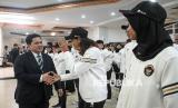 Atlet mengikuti pengukuhan dan pelepasan kontingen atlet Asian Youth Games (AYG) Bahrain 2025 dan Islamic Solidarity Games (ISG) Riyadh, Arab Saudi 2025 di Kementerian Pemuda dan Olahraga, Jakarta, Jumat (17/10/2025). Kementerian Pemuda dan Olahraga melepas sebanyak 123 atlet beserta 52 ofisial untuk ajang Asian Youth Games Bahrain 2025 dan sebanyak 38 atlet beserta 25 ofisial untuk ajang Islamic Solidarity Games Riyadh 2025. (FOTO : ANTARA FOTO/Sulthony Hasanuddin)