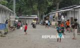 REPUBLIKA.CO.ID, NTT -- Sejumlah warga penyintas erupsi Gunung Lewotobi Laki-laki beraktivitas di hunian sementara (huntara), Desa Konga, Flores Timur, Nusa Tenggara Timur, Sabtu (18/10/2025).