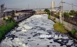 REPUBLIKA.CO.ID, SURABAYA -- Gumpalan busa putih mengapung di permukaan sungai di Kalisari Damen, Surabaya, Jawa Timur, Senin (20/10/2025).