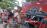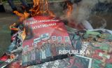 REPUBLIKA.CO.ID, BOGOR -- Sejumlah poster untuk menolak mafia tanah dibakar saat unjuk rasa di depan kantor Agraria dan Tata Ruang/Badan Pertanahan Nasional (ATR/BPN), Kabupaten Bogor, Jawa Barat, Selasa (21/10/2025).
