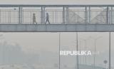 Warga melintasi jembatan penyeberangan di tengah kabut asap yang menyelimuti New Delhi, India, Selasa (21/10/2025). Kabut asap tebal menyelimuti New Delhi, sehari setelah jutaan orang merayakan festival Diwali dengan kembang api yang menyebabkan tingkat polusi udara melonjak. Indeks kualitas udara (AQI) di New Delhi tercatat berada di angka 350, tingkat yang dianggap parah dan berbahaya untuk dihirup. Jarak pandang menurun di beberapa bagian kota saat kabut abu-abu menyelimuti jalan, gedung tinggi, dan monumen bersejarah. New Delhi yang dihuni lebih dari 30 juta jiwa, secara rutin menempati peringkat sebagai kota paling tercemar di dunia. (FOTO : AP Photo/Manish Swarup)