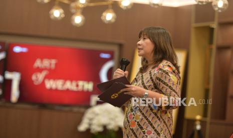 Direktur International Wealth and Premier Banking HSBC Indonesia Lanny Hendra menyampaikan kata sambutan saat peresmian HSBC Wealth Center WTC 1, Jakarta, Selasa (21/10/2025). HSBC Indonesia menghadirkan fasilitas wealth center baru di World Trade Centre 1, Jakarta, khusus untuk nasabah kaya (affluent) dengan konsep beyond banking. Fasilitas Wealth Center HSBC yang kedua di Indonesia ini dirancang sebagai lifestyle hub yang memadukan konsultasi finansial mendalam dengan pengalaman personal terkurasi. (FOTO : Dok Republika)
