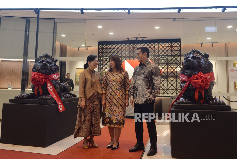 Direktur International Wealth and Premier Banking HSBC Indonesia Lanny Hendra (tengah) bersama Komisaris Independen HSBC Indonesia Shirley Dewayani (kiri), dan Head of Networks Sales and Distribution HSBC Indonesia Sumirat Gandapraja berbincang saat peresmian HSBC Wealth Center WTC 1, Jakarta, Selasa (21/10/2025). HSBC Indonesia menghadirkan fasilitas wealth center baru di World Trade Centre 1, Jakarta, khusus untuk nasabah kaya (affluent) dengan konsep beyond banking. Fasilitas Wealth Center HSBC yang kedua di Indonesia ini dirancang sebagai lifestyle hub yang memadukan konsultasi finansial mendalam dengan pengalaman personal terkurasi. (FOTO : Dok Republika)