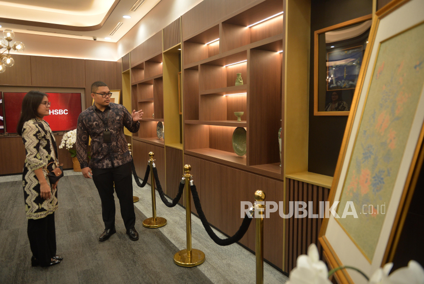 Direktur International Wealth and Premier Banking HSBC Indonesia Lanny Hendra (kiri) melihat fasilitas HSBC Wealth Center WTC 1, Jakarta, Selasa (21/10/2025). HSBC Indonesia menghadirkan fasilitas wealth center baru di World Trade Centre 1, Jakarta, khusus untuk nasabah kaya (affluent) dengan konsep beyond banking. Fasilitas Wealth Center HSBC yang kedua di Indonesia ini dirancang sebagai lifestyle hub yang memadukan konsultasi finansial mendalam dengan pengalaman personal terkurasi. (FOTO : Dok Republika)
