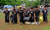 Sejumlah santri Pondok Pesantren Tahfidz Al Musthofa Tebuireng 16 Wadas mengangkut sampah di Alun-alun Temanggung, Jawa Tengah, Rabu (22/10/2025). Puluhan santri yang tergabung dalam Pasukan Semut tersebut bertugas membersihkan lingkungan alun-alun usai apel peringatan Hari Santri Nasional 2025 sebagai wujud tanggung jawab dan kepedulian santri dalam menjaga kebersihan lingkungan. (FOTO : ANTARA FOTO/Anis Efizudin)