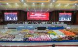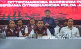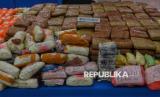 Barang bukti narkotika diperlihatkan saat rilis pengungkapan peredaran gelap narkotika oleh Dittipidnarkoba Bareskrim Polri bersama Ditresnarkoba Polda jajaran di Gedung Bareskrim Polri, Jakarta, Rabu (22/10/2025). Direktorat Tindak Pidana Narkoba (Dittipidnarkoba) Bareskrim Polri beserta Direktorat Reserse Narkoba Polda jajaran mengungkap 38.934 kasus peredaran narkoba sepanjang Januari hingga Oktober 2025. Adapun total barang bukti narkotika yang disita dari para tersangka sebanyak 197,71 ton. (FOTO : Republika/Prayogi)