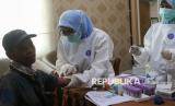 Petugas kesehatan mengambil sampel darah warga terdampak radiasi saat pemeriksaan kesehatan di Puskesmas Cikande, Kabupaten Serang, Banten, Rabu (22/10/2025). Setiap warga yang tinggal di zona merah paparan Cs-137 menjalani pemeriksaan paparan radiasi, dekontaminasi barang-barang yang melekat di tubuh, pengecekan kondisi kesehatan, dan pengambilan sampel darah sebelum direlokasi sementara selama proses dekontaminasi berlangsung. (FOTO : ANTARA FOTO/Angga Budhiyanto)