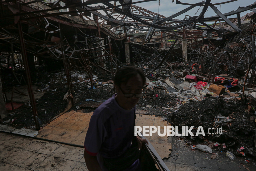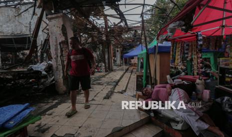 REPUBLIKA.CO.ID, JAKARTA -- Pedagang beraktivitas di antara reruntuhan Pasar Taman Puring yang hangus terbakar di Jakarta, Kamis (23/10/2025).