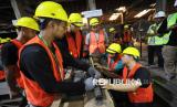 REPUBLIKA.CO.ID, KEDIRI -- Sejumlah santri mempraktikkan cara membentuk besi tulangan beton saat pelatihan konstruksi bersertifikat di Pondok Pesantren Lirboyo, Kota Kediri, Jawa Timur, Jumat (24/10/2025).