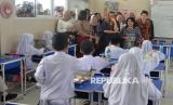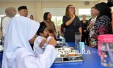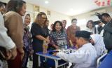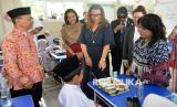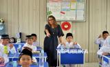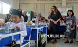 Ibu Negara Brasil Janja Lula da Silva melihat pelaksanaan program Makan Bergizi Gratis (MBG) di SD 05 Angkasa, Halim, Jakarta, Jumat (24/10/2025). Dalam Kunjungan kenegaraannya, Ibu Negara Brasil Janja Da Silva melihat proses pelaksanaan program MBG. (FOTO : Edwin Putranto/Republika)