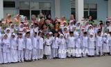 REPUBLIKA.CO.ID, JAKARTA -- Ibu Negara Brasil Janja Da Silva berfoto bersama dengan siswa seusai melihat proses Makan Bergizi Gratis (MBG) di SD Angkasa 05 Halim, Jakarta, Jumat (24/10/2025).
