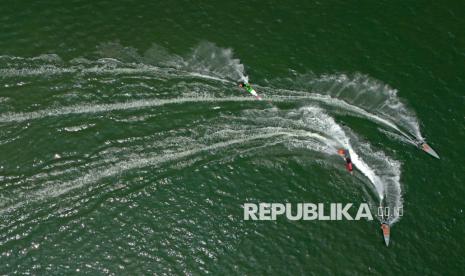 REPUBLIKA.CO.ID, MAKASSAR -- Peserta memacu kecepatan perahunya saat mengikuti Katinting Race 2025 di Taman Andalan Center Point of Indonesia (CPI), Makassar, Sulawesi Selatan, Sabtu (25/10/2025).