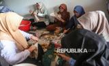 Relawan menyiapkan paket nasi bungkus di dapur umum untuk korban banjir di tenda darurat Kantor Kecamatan Gayamsari, Semarang, Jawa Tengah, Sabtu (25/10/2025). Dapur umum yang didirikan di sejumlah titik oleh Badan Penanggulangan Bencana Daerah (BPBD) bersama Polri, TNI dan Pemkot Semarang itu untuk menyediakan berbagai makanan siap saji dan berprotein dengan total 1.500 bungkus paket nasi setiap harinya dalam membantu meringankan beban masyarakat yang terdampak banjir di kota itu sejak Rabu (22/10). (FOTO : ANTARA FOTO/Makna Zaezar)