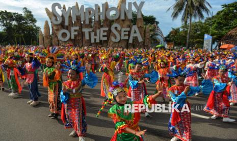 Sejumlah peserta menari dalam kegiatan Semarak Nandak Ondel-ondel Betawi yang berlangsung di Symphony of The Sea, Ancol, Jakarta, pada Sabtu (25/10/2025). Kegiatan Semarak Nandak Ondel-ondel Betawi yang melibatkan lebih dari 2.000 penari dari Indonesia dan mancanegara tersebut digelar dalam rangka pemecahan rekor MURI serta menjadi bagian dari memeriahkan penyelenggaraan 4th Indonesia International Culture Festival (IICF) 2025. (FOTO : undefined)