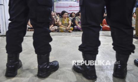 Warga binaan pemasyarakatan (WBP) berkumpul di luar kamar sel saat razia di Lembaga Pemasyarakatan (LPP) Kelas II B Jambi, Muaro Jambi, Jambi, Sabtu (25/10/2025). Razia yang juga melibatkan aparat kepolisian dan TNI di lapas perempuan dengan 60 persen WBP merupakan kasus narkoba tersebut bertujuan mengantisipasi peredaran narkoba dan barang-barang berbahaya lain di dalam lapas. (FOTO : ANTARA FOTO/Wahdi Septiawan)