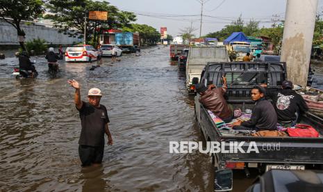 REPUBLIKA.CO.ID, SEMARANG -- Sejumlah warga menumpang mobil bak terbuka untuk dapat menembus banjir yang masih menggenangii jalur utama pantura Semarang-Surabaya di Jalan Kaligawe Raya, Semarang, Jawa Tengah, Senin (27/10/2025).