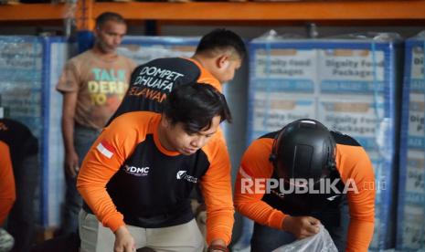 REPUBLIKA.CO.ID, AMMAN -- Relawan Dompet Dhuafa mengemas paket bantuan makanan yang akan dikirim ke Gaza dan kamp pengungsi Amman di gudang Marka, Amman, Yordania, Selasa (29/10/2025).