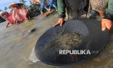 Warga memperlihatkan emas yang didapat saat mendulang emas dengan cara tradisional di Daerah Aliran Sungai (DAS) Krung Inoeng Kecamatan Pante Ceureumen, Aceh Barat, Aceh, Selasa (28/10/2025). Pemerintah memprioritaskan unit usaha koperasi, usaha mikro kecil dan menengah (UMKM) dan badan usaha milik organisasi kemasyarakatan keagamaan untuk mengelola tambang rakyat dengan tata kelola yang tertib, aman dan berkelanjutan untuk mempercepat pemerataan ekonomi di wilayah pertambangan serta memastikan manfaatnya dirasakan langsung oleh masyarakat setempat. (FOTO : ANTARA FOTO/Syifa Yulinnas)