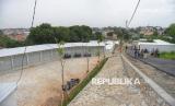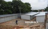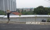 Pekerja beraktivitas di dekat kios di Sentra Fauna dan Kuliner Lenteng Agung, Jakarta, Rabu (29/10/2025). okasi yang diberi nama Sentra Fauna dan Kuliner Lenteng Agung tersebut hampir rampung dan siap ditempati pedagang. (FOTO : Republika/Prayogi)