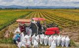 REPUBLIKA.CO.ID, KONAWE -- Sejumlah petani menurunkan beras dari atas mesin pemanen di areal persawahan Desa Lebo jaya, Kabupaten Konawe Selatan, Sulawesi Tenggara, Rabu (29/10/2025).