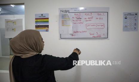 Petugas menjelaskan data jumlah porsi di fasilitas Satuan Pelayanan Pemenuhan Gizi (SPPG) Cibodas 2 di Cibodas, Lembang, Kabupaten Bandung Barat, Jawa Barat, Rabu (29/10/2025). Pemerintah Kabupaten Bandung Barat menutup sementara dapur SPPG Cibodas 2 yang diduga menjadi penyebab keracunan massal di Kecamatan Lembang hingga keluarnya hasil uji laboratorium dan evaluasi dari Badan Gizi Nasional (BGN). (FOTO : ANTARA FOTO/Abdan Syakura)