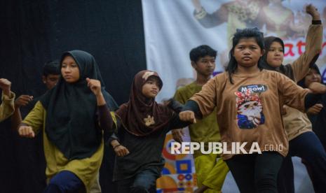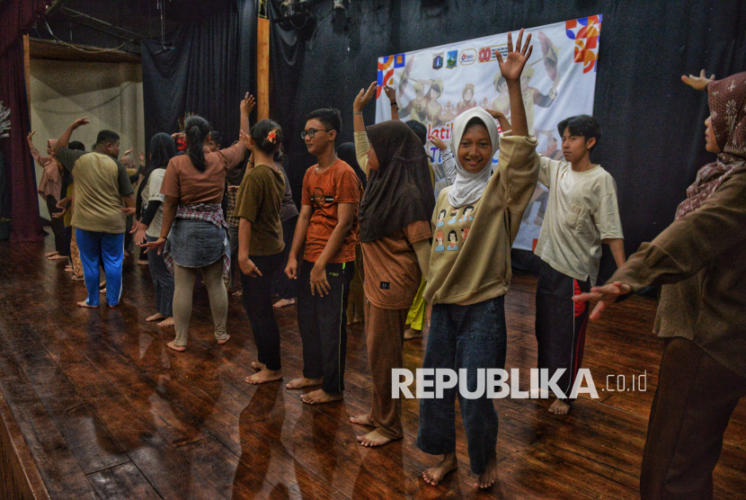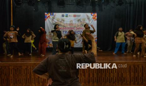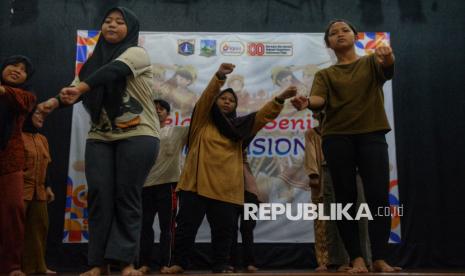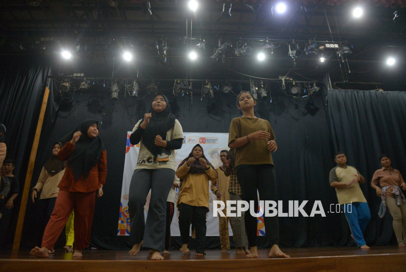 Siswa Sekolah Luar Biasa (SLB) mengikuti pelatihan seni tari tradisional di Pusat Pelatihan Seni Budaya (PPSB) M. Mashabi, Tanah Abang, Jakarta, Kamis (30/10/2025). Pelatihan yang diselenggarakan oleh Suku Dinas (Sudin) Kebudayaan Jakarta Pusat ini diikuti oleh 50 peserta dari empat sekolah SLB yang berada di wilayah Jakarta Pusat. Kegiatan yang berlangsung hingga 5 November 2025 ini bertujuan memberikan ruang ekspresi serta meningkatkan kreativitas siswa berkebutuhan khusus melalui seni tari tradisional. (FOTO : Republika/Prayogi)
