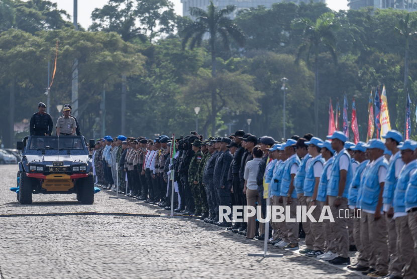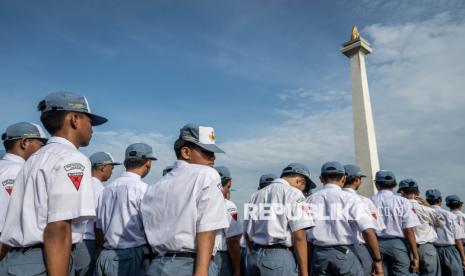 REPUBLIKA.CO.ID, JAKARTA -- Sejumlah siswa SMA mengikuti apel Kebangsaan dalam rangka peluncuran Program Jaga Jakarta Tanpa Narkoba di kawasan Monas, Jakarta, Kamis (30/10/2025).