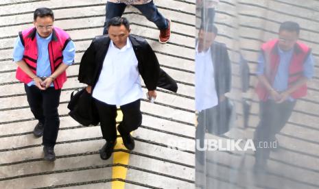 Terdakwa mantan Kadis Kebudayaan DKI Jakarta Iwan Henry Wardhana (kiri) berjalan usai menjalani sidang vonis terkait kasus korupsi manipulasi anggaran hingga kegiatan fiktif di Dinas Kebudayaan Jakarta di Pengadilan Tipikor, Jakarta, Kamis (30/10/2025). Majelis hakim menjatuhkan pidana kepada terdakwa dengan pidana penjara selama 11 tahun dan denda Rp 500 juta subsider 3 bulan penjara. (FOTO : ANTARA FOTO/Muhammad Iqbal)