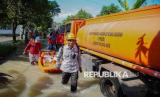 Petugas BPBD saat menyalurkan bantuan makanan di Rowokangkung, Lumajang, Jawa Timur, Sabtu (1/11/2025). Pemkab Lumajang memberikan bantuan air bersih dan makanan siap saji untuk korban banjir serta melakukan normalisasi sejumlah sungai karena luapan airnya telah menyebabkan 895 rumah warga tergenang banjir di wilayah tersebut. (FOTO : ANTARA FOTO/Irfan Sumanjaya)