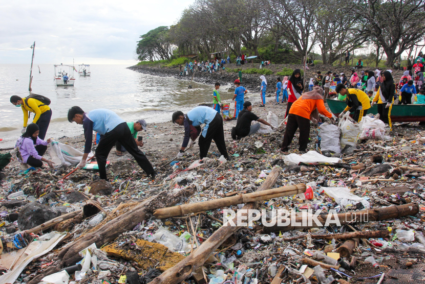 REPUBLIKA.CO.ID, SURABAYA -- Sejumlah pelajar memungut sampah di tepi pantai kawasan Jembatan Suramadu, Surabaya, Jawa Timur, Sabtu (1/11/2025).